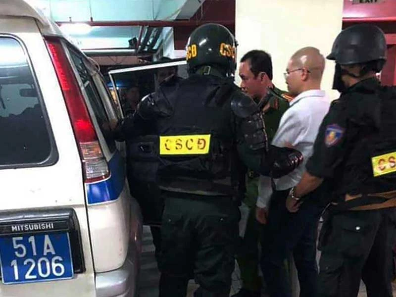 Rạng sáng 19-9, công an thực hiện lệnh bắt khẩn cấp, áp giải ông Nguyễn Thái Luyện chủ tịch HĐQT Công ty Alibaba về trụ sở công an. Ảnh: NTX