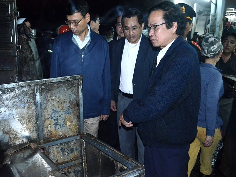 Ông Hồ Kỳ Minh, Phó Chủ tịch TP Đà Nẵng cùng lãnh đạo TP kiểm tra lò mổ lúc rạng sáng. Ảnh: NVT
