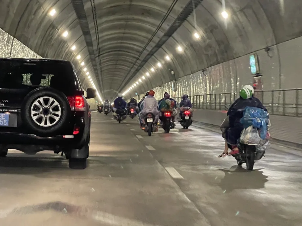 Sau đó, đoàn của lãnh đạo TP Đà Nẵng đã cùng dẫn đoàn tiễn bà con chạy xe máy qua hầm Hải Vân về địa phận Thừa Thiên Huế.