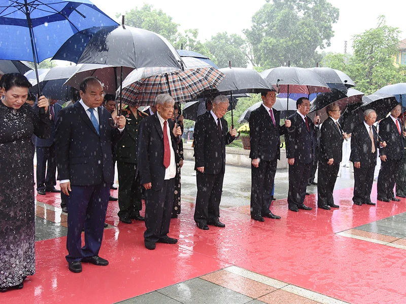 Tiếp đó, lãnh đạo Đảng, Nhà nước, MTTQ Việt Nam tới đặt vòng hoa, vào lăng viếng Chủ tịch Hồ Chí Minh; thành kính bày tỏ lòng biết ơn vô hạn với công lao to lớn của Người đối với sự nghiệp cách mạng vẻ vang của Đảng và dân tộc ta.