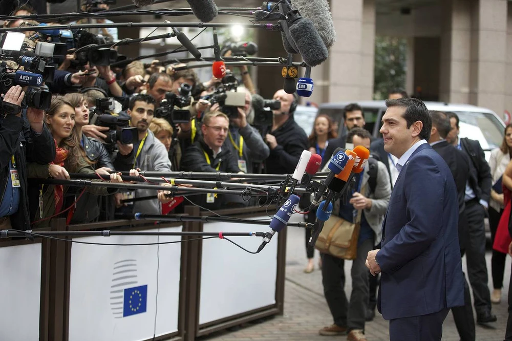 Thủ tướng Hy Lạp Alexis Tsipras đến cuộc họp thượng đỉnh EU để thảo luận tình hình Hy Lạp hôm Chủ nhật (12-07) (ảnh: ZUMA PRESS)