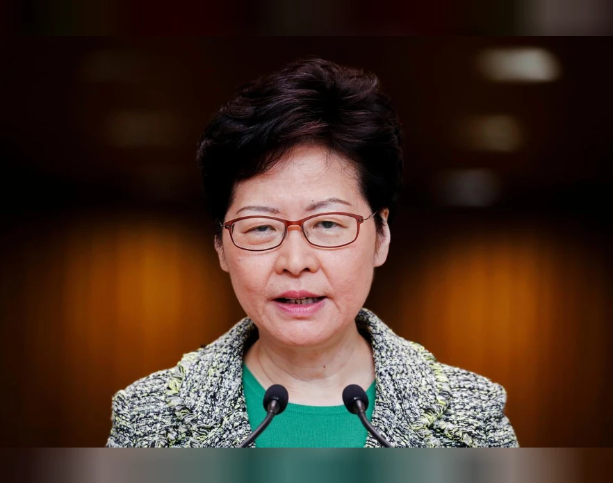 Đặc khu trưởng Hong Kong Lâm Trịnh Nguyệt Nga trong buổi họp báo 24-9. Ảnh: REUTERS