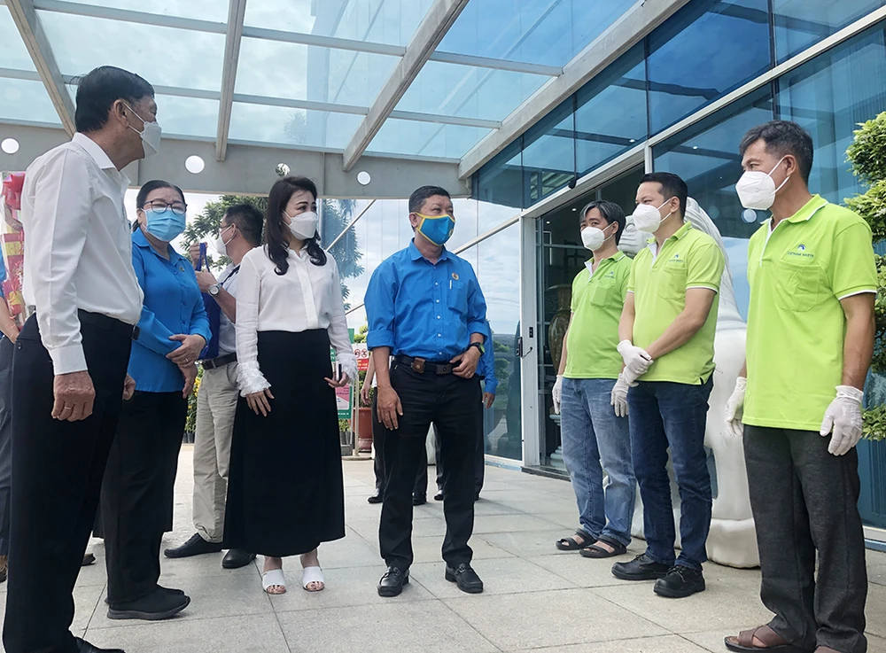 Ông Trần Đoàn Trung, Phó Chủ tịch thường trực Liên đoàn Lao động TP.HCM thăm hỏi người lao động của VWS.
