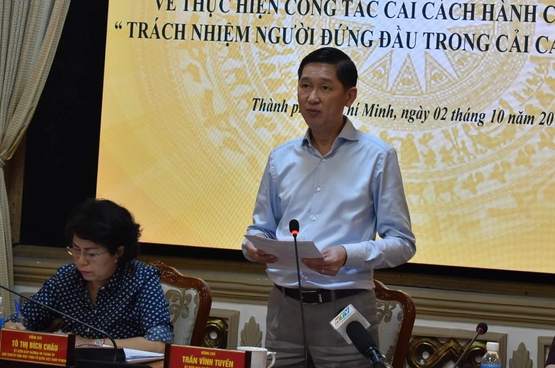 (PLO)- Phó Chủ tịch UBND TP.HCM Trần Vĩnh Tuyến nói như trên tại hội nghị giao ban trực tuyến sơ kết chín tháng đầu năm 2018 về thực hiện công tác cải cách hành chính trên địa bàn TP.HCM.