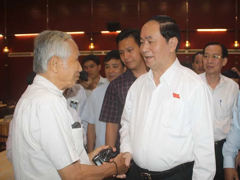 Chủ tịch nước Trần Đại Quang trao đổi với cử tri TP.HCM. Ảnh: T.Lâm