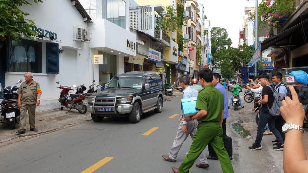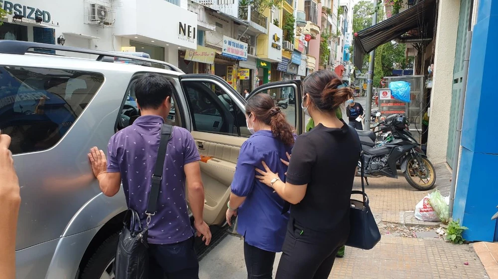 Kế toán Công ty PIT Travel được đưa về trụ sở công an làm việc. Ảnh: N.TÂN