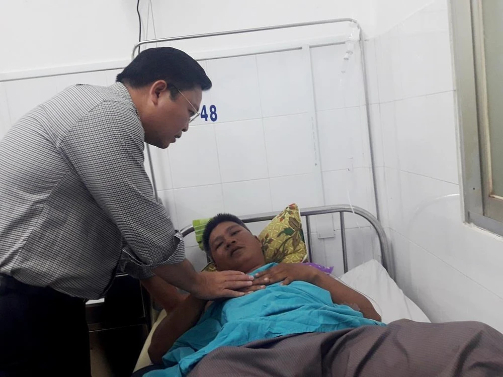 Phó Chủ tịch UBND tỉnh Quảng Nam Lê Trí Thanh thăm hỏi, động viên anh Khuê yên tâm điều trị. Ảnh: TA