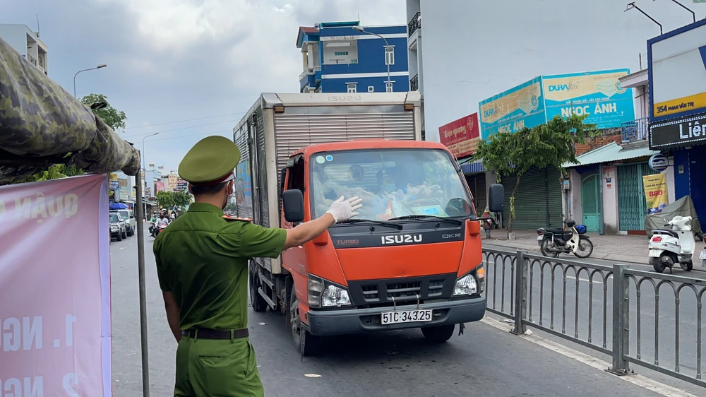 Theo ghi nhận của PLO,tại chốt chống dịch Phan Văn Trị - Phạm Văn Đồng người dân tập trung qua chốt đông, theo cả hai hướng.