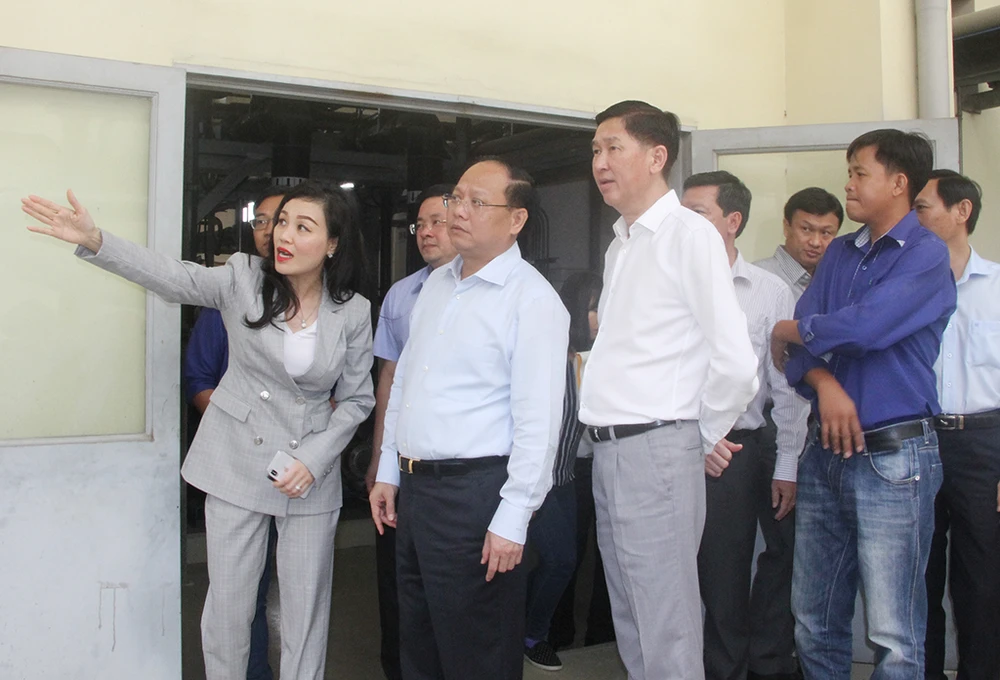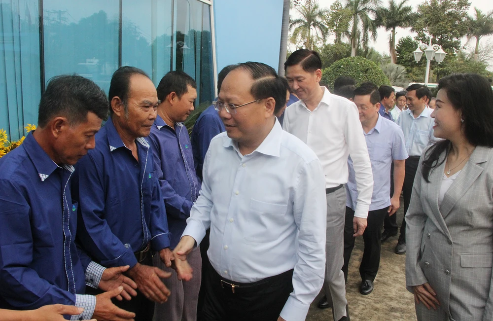 Lãnh đạo thành phố bắt tay, thăm hỏi người lao động của Khu Liên hợp Xử lý chất thải rắn Đa Phước