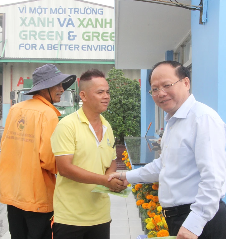 Cũng nhân dịp này, lãnh đạo thành phố đã "lì xì" năm mới cho anh chị em lao động, các công nhân vệ sinh và anh em lái xe vận chuyển rác...