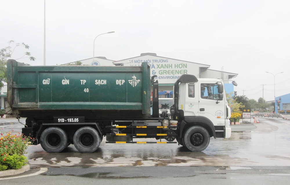 Các xe rác tấp nập ra vào Khu Liên hợp Xử lý chất thải rắn Đa Phước sáng ngày 30 tết