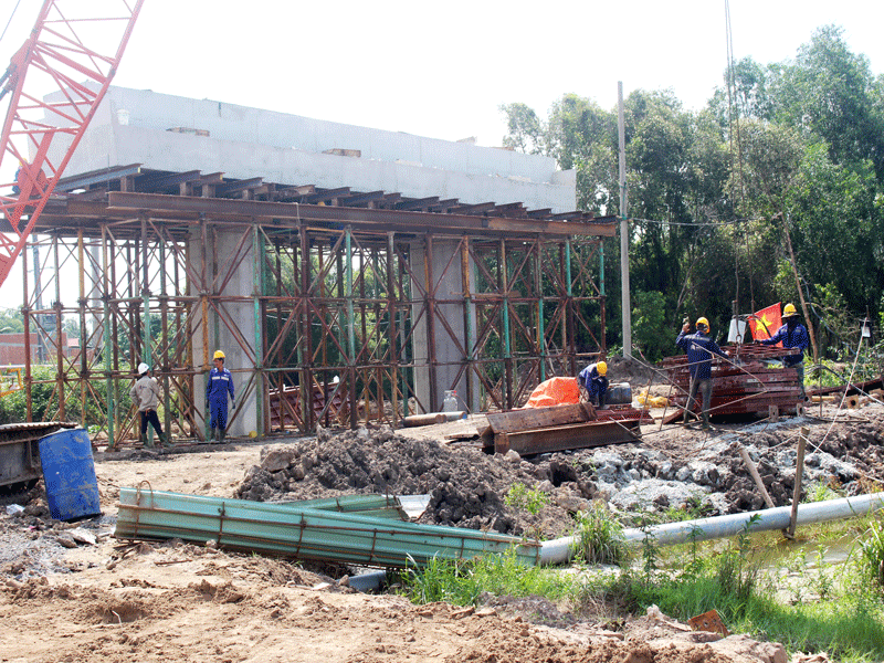 Theo báo cáo của doanh nghiệp dự án, đến nay các nhà thầu đã triển khai 19 gói thầu xây lắp, khối lượng đạt 21,55%, giá trị khoảng 1.127 tỉ đồng, chủ yếu là công tác chuẩn bị mặt bằng công trường, làm đường công vụ, đào đất không thích hợp, xử lý nền đất yếu, đắp cát nền đường, đóng cọc, bê tông mố trụ, đúc dầm.