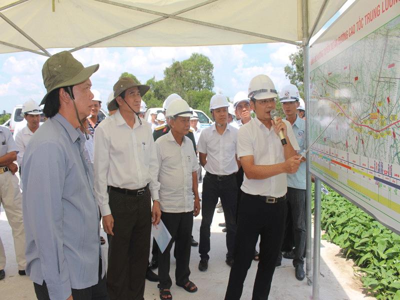 Chiều 27-5, ông Nguyễn Văn Danh – Bí thư Tỉnh ủy Tiền Giang, ông Lê Văn Hưởng – Chủ tịch UBND tỉnh Tiền Giang cùng Đoàn công tác Ban thường vụ tỉnh ủy Tiền Giang, UBND tỉnh Tiền Giang, các sở ngành có liên quan cùng Công ty Cổ phần BOT Trung Lương – Mỹ Thuận (doanh nghiệp dự án) đã trực tiếp đi thực tế kiểm tra thực địa quá trình thi công dự án đầu tư xây dựng công trình đường cao tốc Trung Lương – Mỹ Thuận.