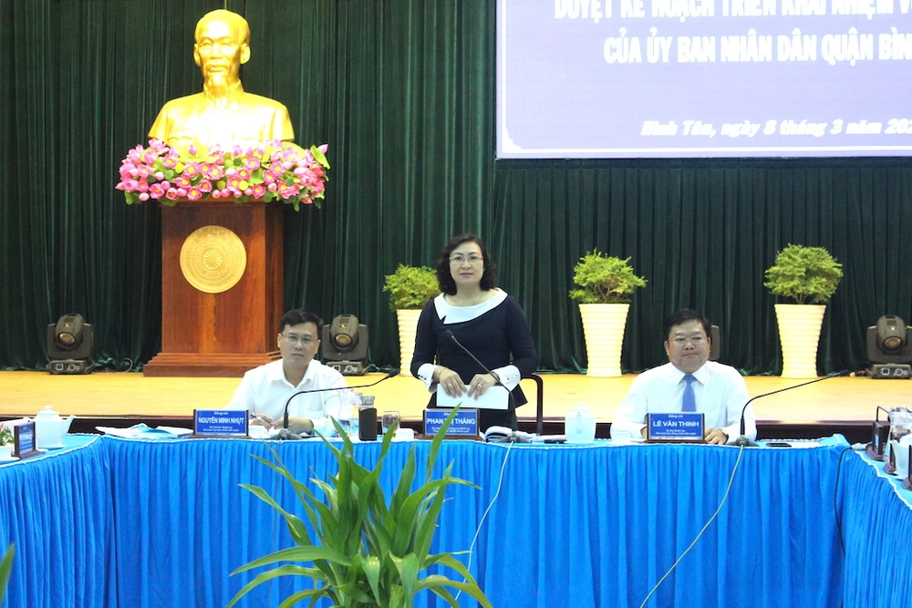 Chiều 8-3, Phó Chủ tịch UBND TP.HCM Phan Thị Thắng đã có buổi làm việc duyệt kế hoạch triển khai nhiệm vụ năm 2021 của UBND quận Bình Tân.