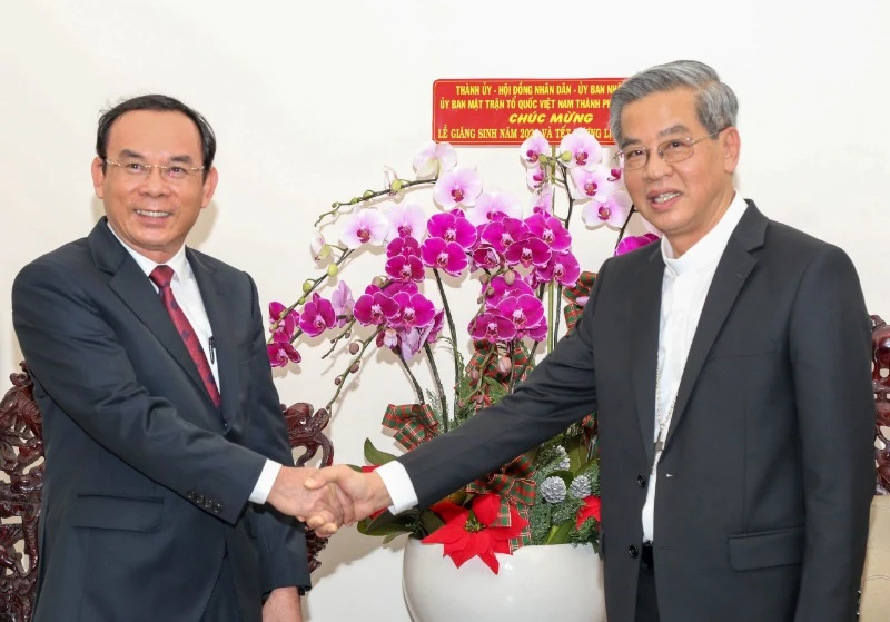 Trưa 21-12, ông Nguyễn Văn Nên, Bí thư Thành ủy TP.HCM dẫn đầu đoàn lãnh đạo Thành ủy - HĐND - UBND - Ủy ban MTTQ Việt Nam TP.HCM, đã đến thăm và chúc mừng Tòa Tổng Giám mục Tổng giáo phận TP.HCM, Tổng Giám mục Nguyễn Năng và Giám mục phụ tá Nguyễn Anh Tuấn, nhân lễ Giáng sinh năm 2020 và Tết Dương lịch năm 2021.