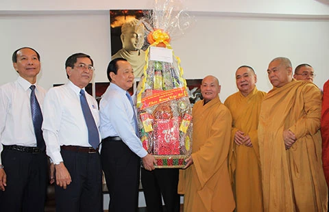 Hòa thượng Thích Thiện Nhơn, Chủ tịch Hội đồng trị sự Trung ương Giáo hội Phật giáo Việt Nam, cảm ơn lãnh đạo TP đã luôn quan tâm và tạo điều kiện thuận lợi cho các hoạt động của Phật giáo. Hòa thượng Thích Thiện Nhơn cho biết trong năm qua các tổ chức thuộc Trung ương Giáo hội Phật giáo Việt Nam đã làm tốt công tác chăm lo, hỗ trợ đồng bào khó khăn với số tiền 421 tỉ đồng. Thời gian tới Phật giáo sẽ tiếp tục đẩy mạnh công tác này.