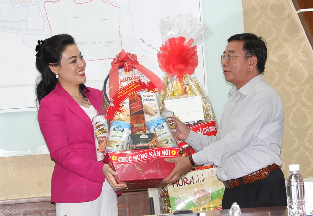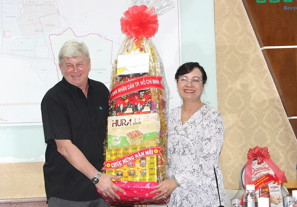 Ông Nguyễn Văn Hồng, Phó GĐ Sở Tài nguyên & Môi trường TP.HCM tặng quà tết cho công ty VWS