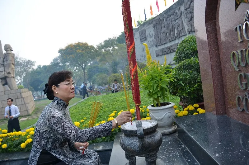 Các đại biểu đã dành một phút mặc niệm tưởng nhớ đến các anh hùng liệt sĩ, những người đã hy sinh vì độc lập tự do của đất nước. Sau khi dâng hương và đặt vòng hoa tại tượng đài liệt sĩ, các đại biểu đã thắp hương, viếng phần mộ các liệt sĩ an nghỉ tại Nghĩa trang liệt sĩ TP.HCM.