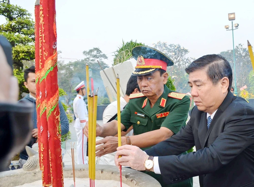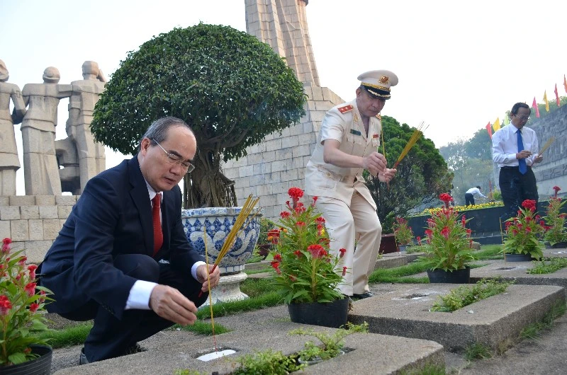 Chủ tịch UBND TP.HCM Nguyễn Thành Phong dâng hương các anh hùng liệt sĩ. Ảnh: TÁ LÂM