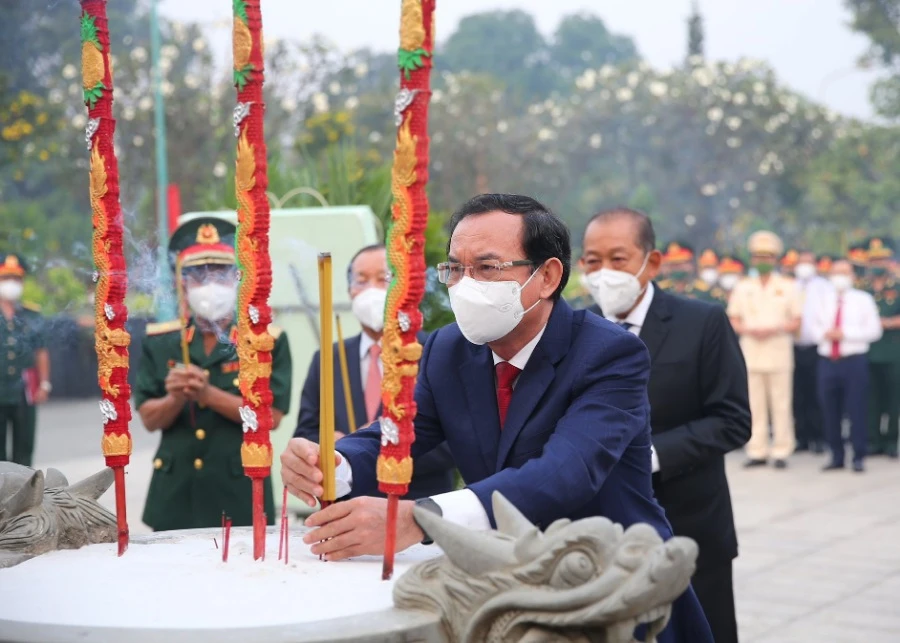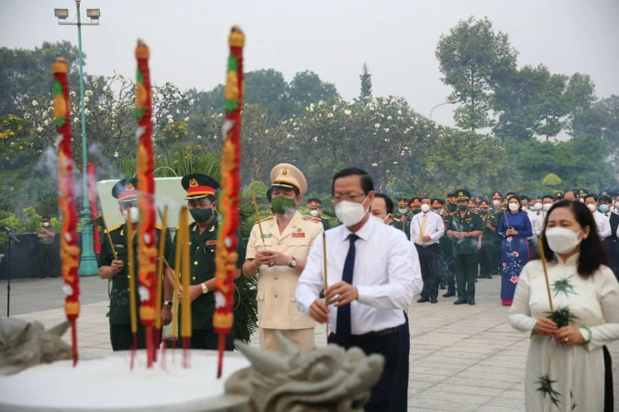 Sáng 28-1, Nhân dịp Tết Nguyên đán Nhâm Dần 2022, đoàn đại biểu Thành ủy – HĐND – UBND - Ủy ban MTTQ Việt Nam TP.HCM do ông Nguyễn Văn Nên, Ủy viên Bộ Chính trị, Bí thư Thành ủy TP.HCM làm trưởng đoàn đã đến dâng hoa, dâng hương tưởng niệm các anh hùng liệt sĩ tại Nghĩa trang Liệt sĩ TP.HCM (Đồi không tên, TP Thủ Đức).