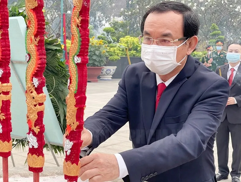 Sáng 8-2, tại Nghĩa trang Liệt sĩ TP.HCM (Đồi Không tên, TP Thủ Đức), đoàn lãnh đạo Thành ủy - HĐND - UBND - Ủy ban MTTQ Việt Nam TP.HCM do ông Nguyễn Văn Nên, Ủy viên Bộ Chính trị, Bí thư Thành ủy làm trưởng đoàn đã đến viếng và dâng hoa, dâng hương tưởng nhớ các Mẹ Việt Nam anh hùng, các anh hùng liệt sĩ nhân dịp Tết Tân Sửu 2021.