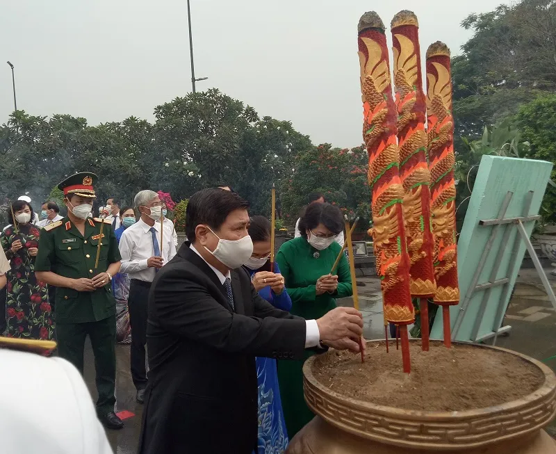 Cũng trong ngày hôm nay, đoàn lãnh đạo TP.HCM do ông Trần Lưu Quang, Ủy viên Trung ương Đảng, Phó Bí thư Thường trực Thành ủy TP.HCM làm trưởng đoàn, đã đến đặt vòng hoa và dâng hương tưởng niệm các anh hùng liệt sĩ tại Đền Tưởng niệm Liệt sĩ Bến Dược (huyện Củ Chi, TP.HCM).
