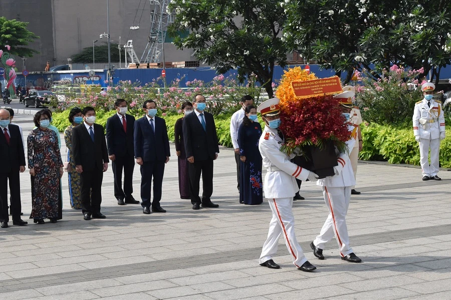 Sau đó, Bí thư Thành ủy Nguyễn Văn Nên cùng các đại biểu cũng đến dâng hoa Chủ tịch Hồ Chí Minh tại Công viên tượng đài Chủ tịch Hồ Chí Minh (quận 1, TP.HCM).
