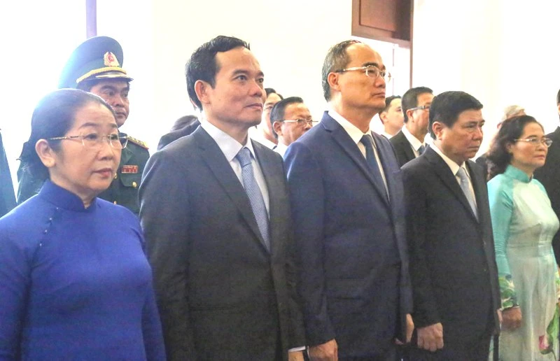Chủ tịch UBND TP Nguyễn Thành Phong, Phó Bí thư Thường trực Thành ủy Trần Lưu Quang, Chủ tịch HĐND TP Nguyễn Thị Lệ, Chủ tịch Ủy ban MTTQ Việt Nam TP.HCM Tô Thị Bích Châu, cùng nhiều lãnh đạo các ban ngành, đoàn thể, quận huyện... cùng tham gia đoàn.
