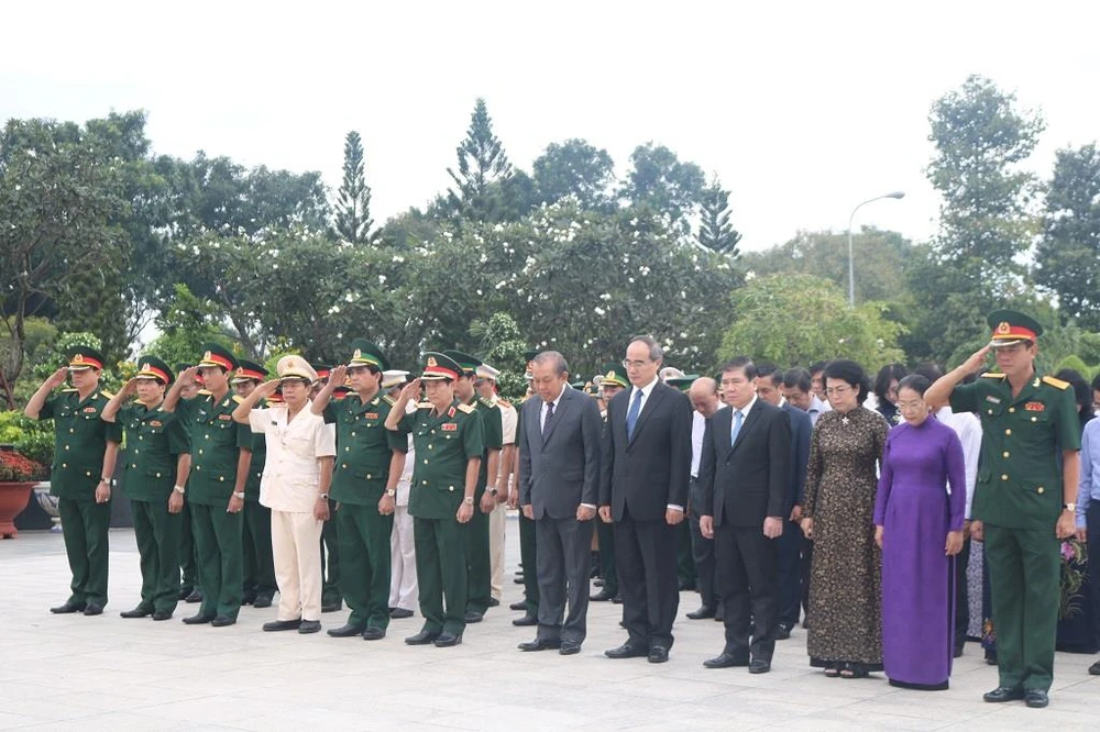 Tại đây, các đại biểu đã dâng hương, dâng hoa, dành phút mặc niệm tưởng nhớ các anh hùng liệt sĩ đã hy sinh cho độc lập tự do của Tổ quốc. Sau khi viếng nghĩa trang liệt sĩ TP, đoàn đã đến dâng hương và đặt vòng hoa viếng nghĩa trang TP.HCM (quận Thủ Đức).