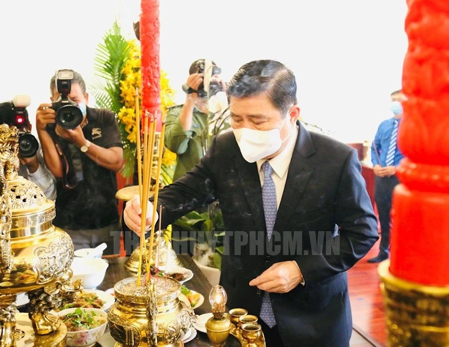 Chủ tịch UBND TP.HCM Nguyễn Thành Phong dâng hương tưởng nhớ Bác Hồ. Ảnh: Web Thành ủy TP.HCM