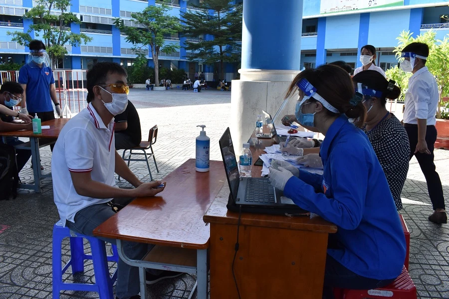 Điểm này mỗi ngày tiêm cho khoảng 700 người dân từ 18 đến 64 tuổi, người trên 65 tuổi và người có bệnh lý nền. Người dân khi đến tiêm được hướng dẫn khai báo y tế, ngồi giãn cách, khám sàng lọc, khử khuẩn, đeo khẩu trang.