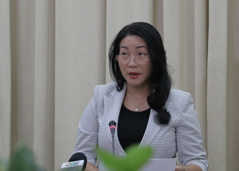 Bà Nguyễn Thị Thanh Mỹ, Phó Giám đốc Sở TN&MT TP.HCM báo cáo tại cuộc họp. Ảnh: PHƯƠNG THÙY