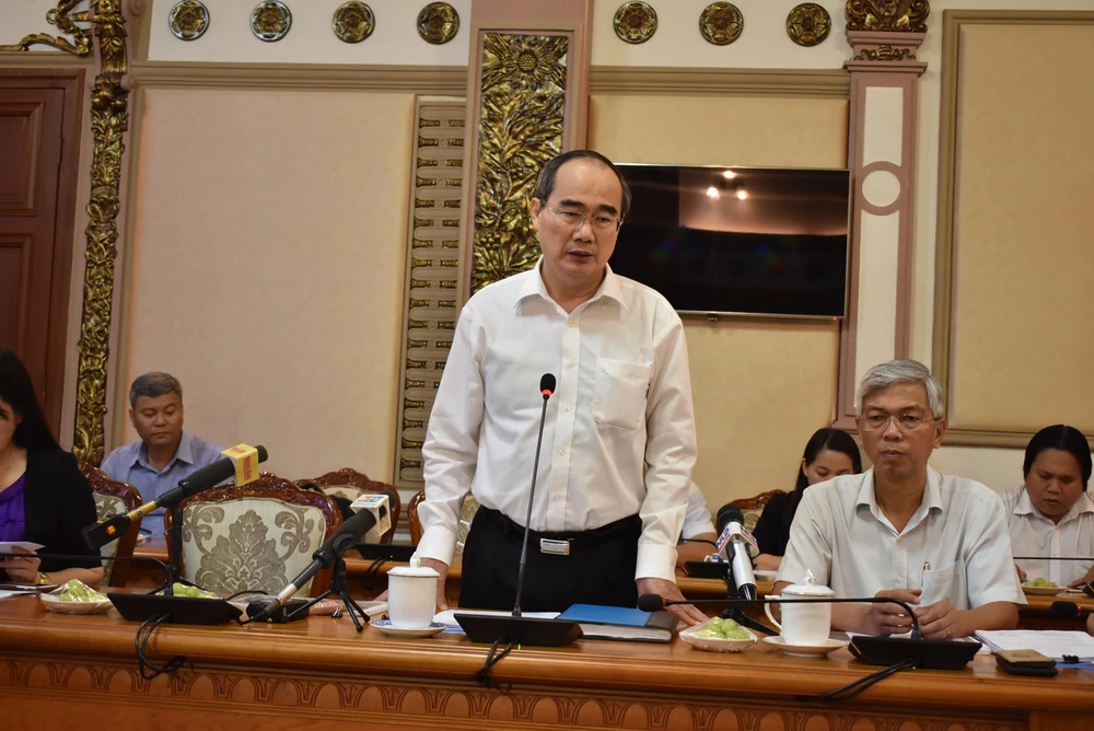 Bí thư Thành ủy TP Nguyễn Thiện Nhân phát biểu tại buổi làm việc. Ảnh: NC