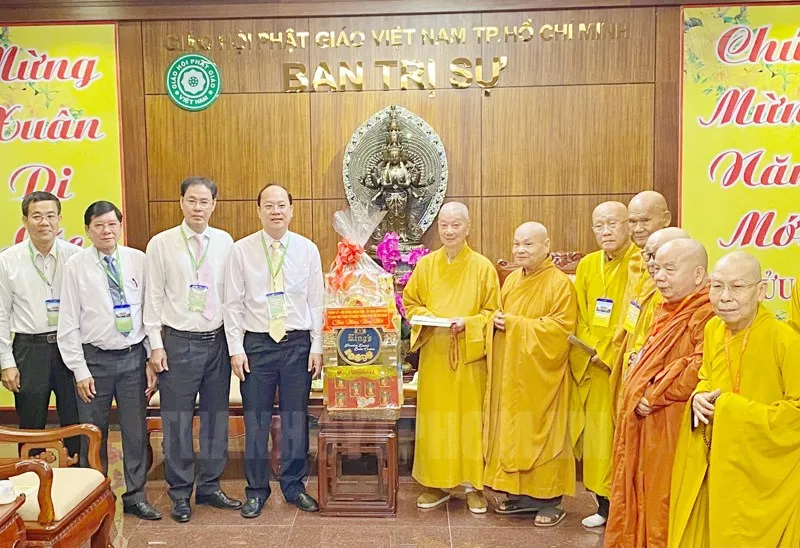 Phó Bí Thành ủy TPHCMNguyễn Hồ Hải đến thăm và chúc Tết Ban Trị sự Giáo hội Phật giáo Việt Nam TP. Ảnh: Web Thành ủy TP.HCM