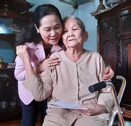 Chủ tịch HĐND TP.HCM Nguyễn Thị Lệ ân cần thăm hỏi sức khỏe mẹ Việt Nam anh hùng Nguyễn Thị Ớt. Ảnh: Web Thành ủy TP.HCM