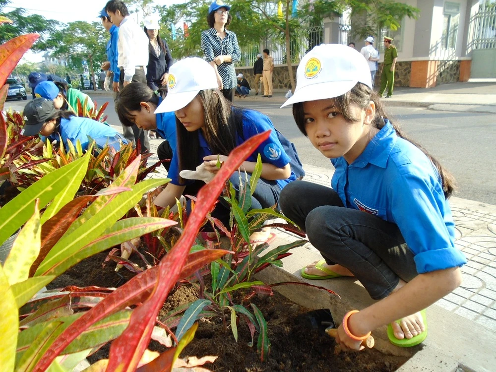 Sau lễ phát động, các lãnh đạo thành phố đã trồng 4 cây xanh, cải tạo mảng xanh tại khuôn viên trường THCS Lý Thánh Tông.