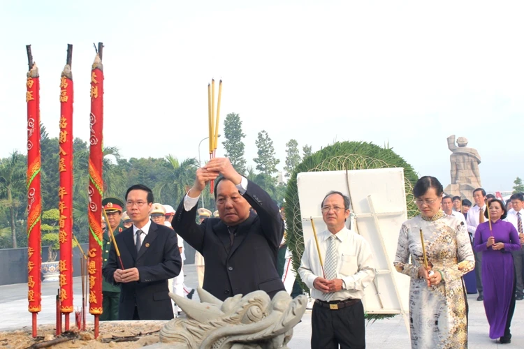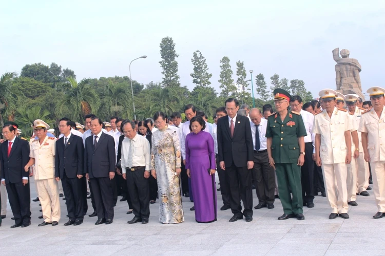 Tại đây. đoàn lãnh đạo đã dành một phút mặc niệm để bày tỏ lòng tri ân đối với công lao to lớn của các anh hùng liệt sĩ trong sự nghiệp đấu tranh cho độc lập, tự do của Tổ quốc.