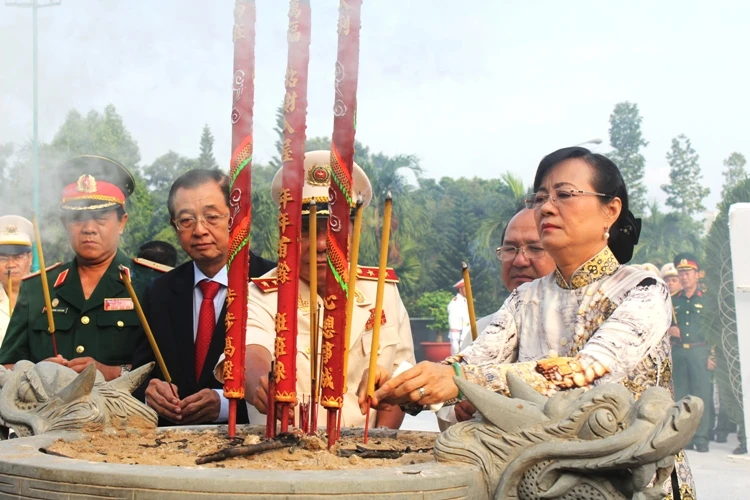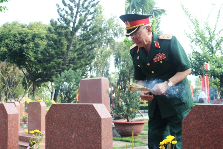 Buổi dâng hương tưởng nhớ nhân dịp kỷ niệm 70 năm ngày Cách mạng tháng Tám, Quốc khánh nước Cộng hòa xã hội chủ nghĩa Việt Nam (2-9) và 68 năm ngày Thương binh – Liệt sĩ (27-7) diễn ra trong không khí trang trọng. Ngoài các cán bộ lãnh đạo của thành phố, nhiều cựu chiến binh, quân nhân đã đến nghĩa trang thăm lại đồng đội xưa.