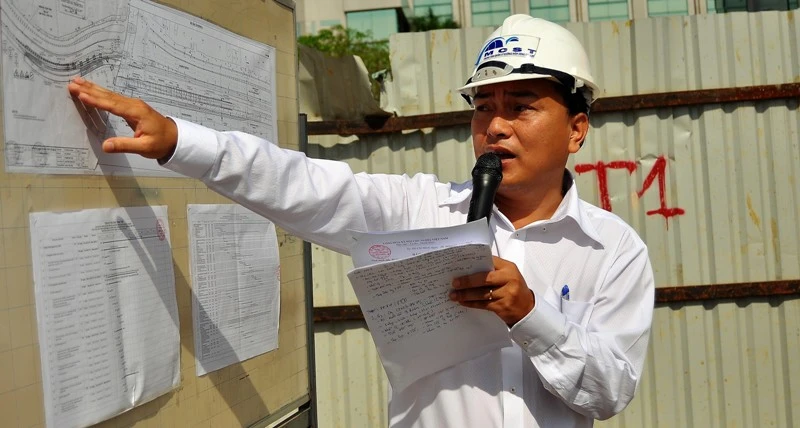 Ông Lê Minh Triết, Phó Giám đốc phụ trách trung tâm quản lý đường hầm sông Sài Gòn (thuộc Sở GTVT), đại diện chủ đầu tư các dự án xây cầu kết nối giữa cầu Nguyễn Văn Cừ, cầu Nguyễn Tri Phương với đường Võ Văn Kiệt cam kết rút ngắn tiến độ các dự án. Trong đó, công trình xây cầu kết nối cầu Nguyễn Văn Cừ với đường Võ Văn Kiệt sẽ cho thông xe sớm 5 tháng so với kế hoạch. Ảnh: MP