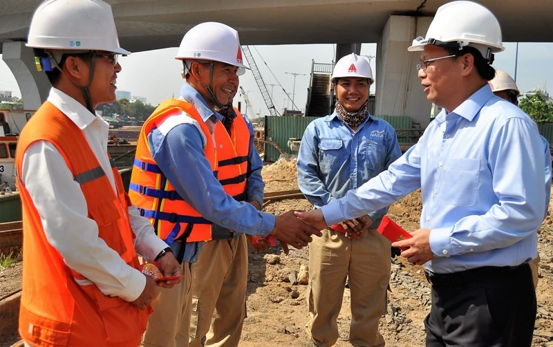 Sáng 28-1 (mùng Một Tết Đinh Dậu 2017), Phó Bí thư Thường trực TP.HCM Tất Thành Cang, Phó Chủ tịch UBND TP Lê Văn Khoa, Giám đốc Sở GTVT Bùi Xuân Cường cùng đại diện nhiều cơ quan đơn vị đã đến thăm các công nhân, kỹ sư, nhà thầu thi công… một số dự án hạ tầng giao thông thi công xuyên Tết.