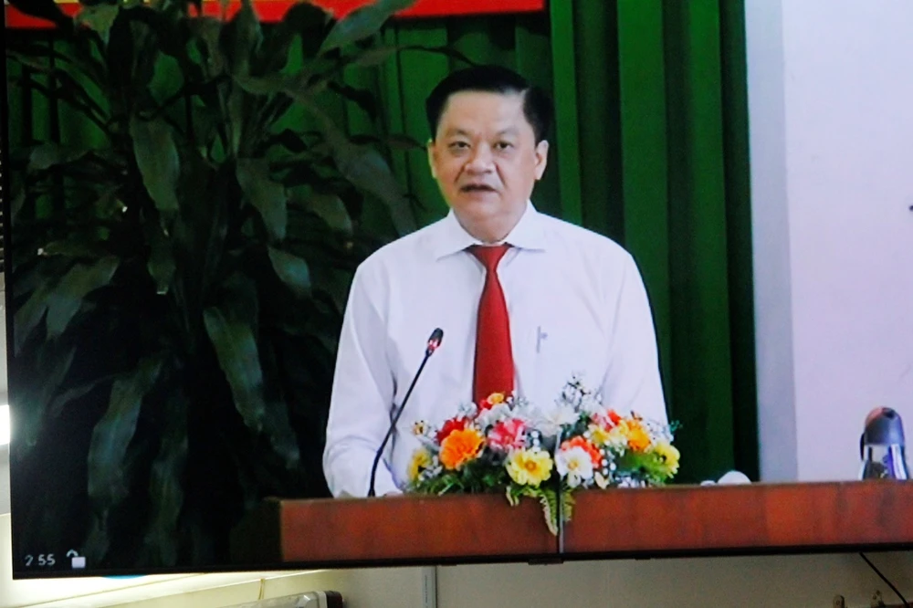 Phó Chủ tịch UBND TP Cần Thơ Dương Tấn Hiển trả lời chất vấn tại điểm cầu UBND TP. Ảnh chụp qua màn hình. Ảnh: NHẪN NAM