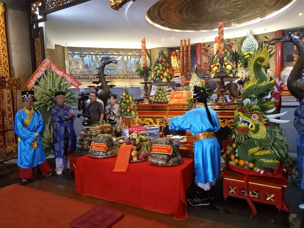 Cận cảnh đoàn nghinh Lễ dâng cúng bánh Tét Quốc Tổ Hùng Vương
