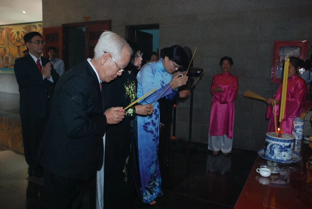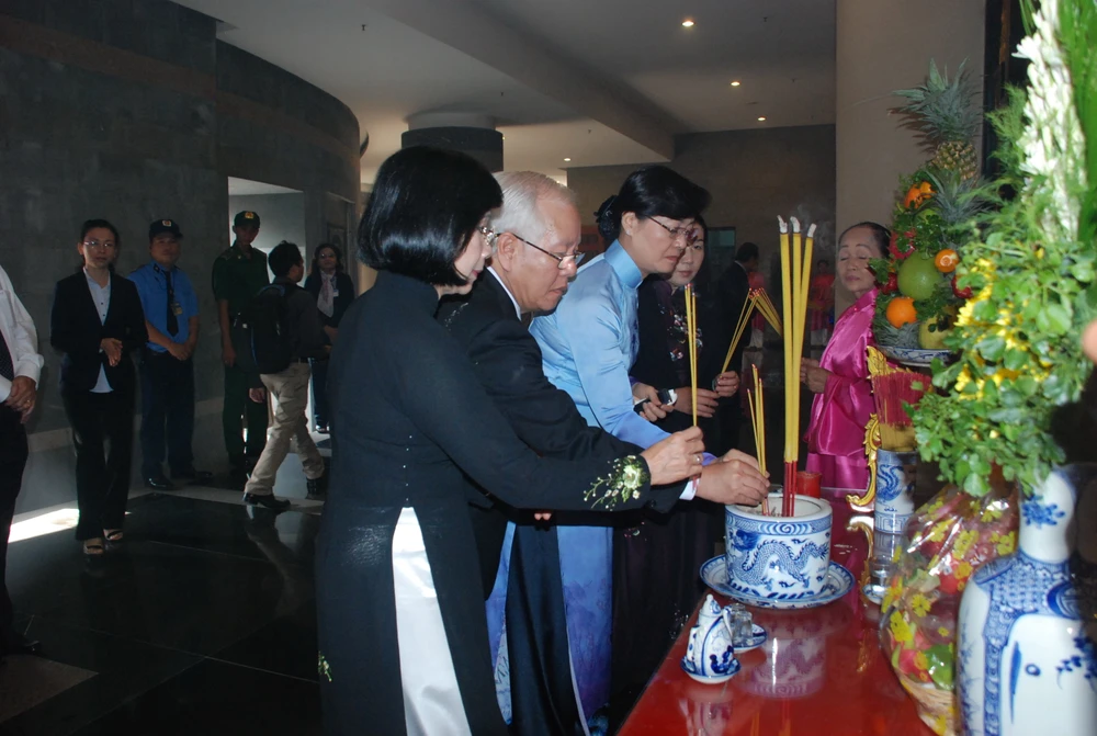 Chủ tịch UBND TP Lê Hoàng Quân, Chủ tịch HĐND TP Nguyễn Thị Quyết Tâm, Phó bí thư Thành ủy Nguyễn Thị Thu Hà dâng hương tưởng nhớ các Vua Hùng