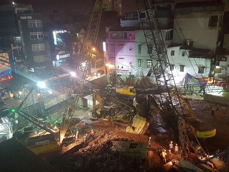 Ngay sau khi sự việc xảy ra, nhà thầu đã tích cực xử lý sự cố. Sơ bộ đánh giá thiệt hại về tài sản, hư hỏng một phần lan can và mái tôn nhà dân đối diện công trường.