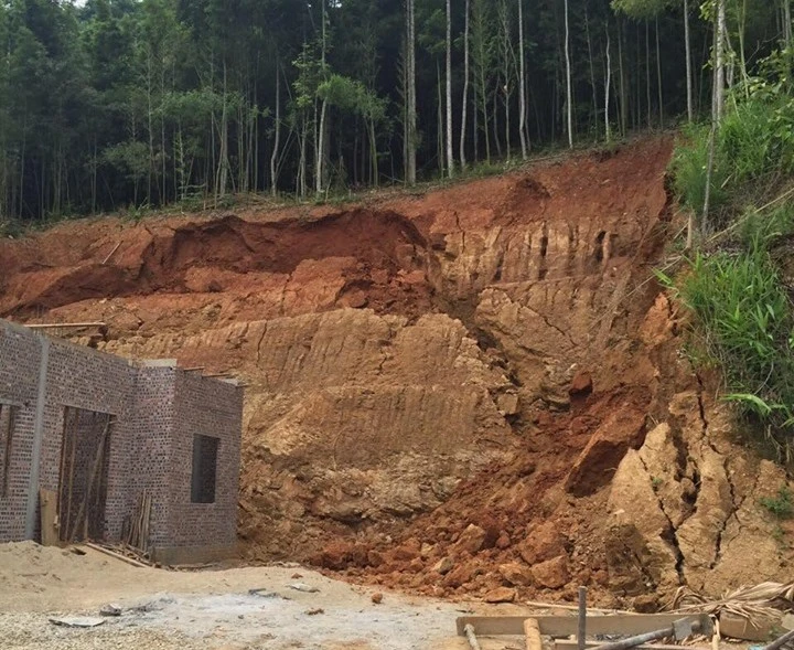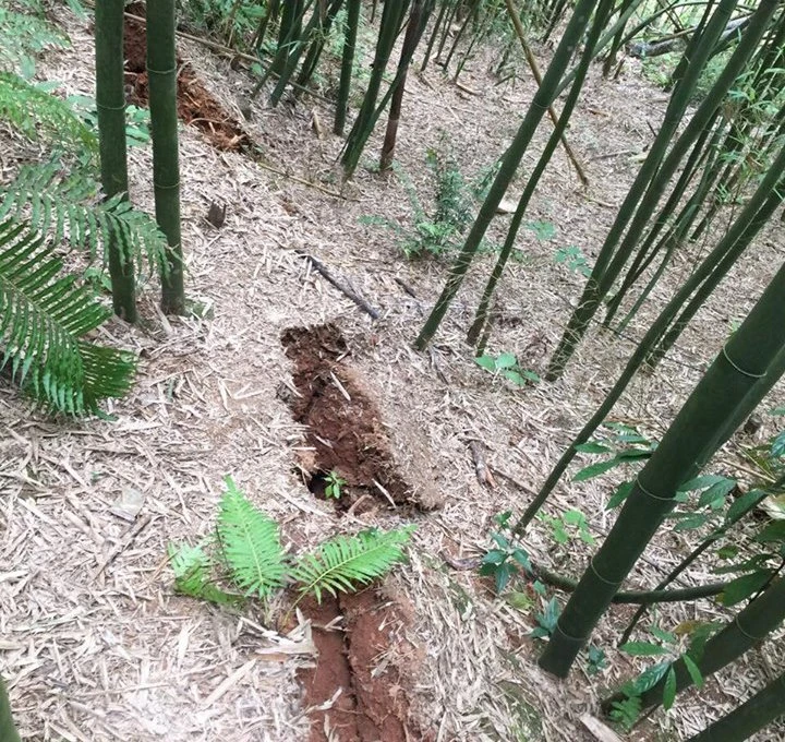 Vết nứt gây sụt lún ở khu lưng đồi xã Xuân Hòa, huyện Bảo Yên, tỉnh Lào Cai. Ảnh: PCTT