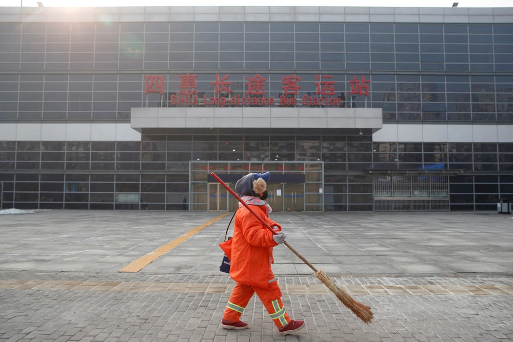 Một bến xe đường dài ở Bắc Kinh đóng cửa vì dịch COVID-19. Ảnh: REUTERS