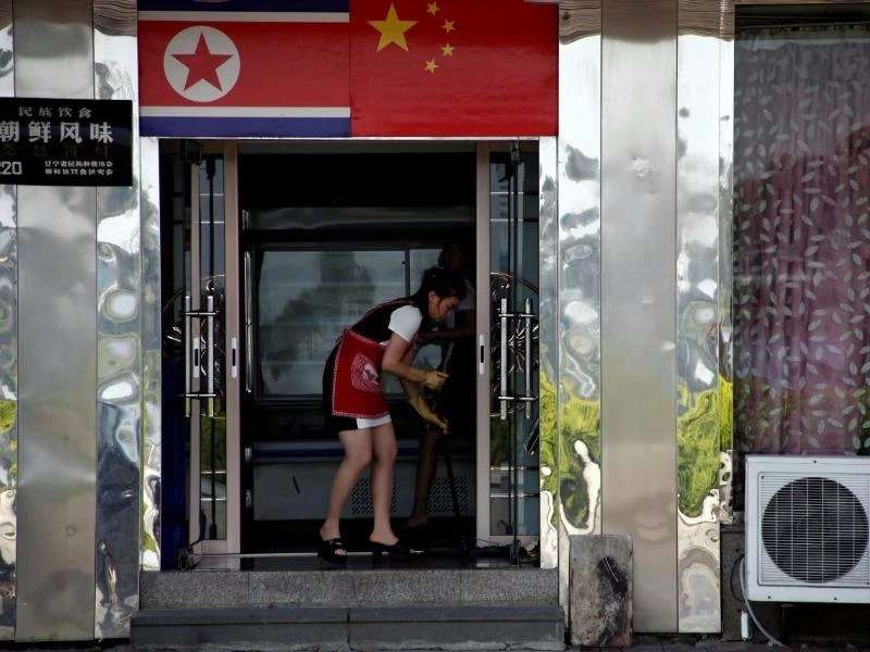Một nữ bồi bàn Triều Tiên làm việc tại một nhà hàng Trung Quốc ở TP Đan Đông, tỉnh Liêu Ninh, Đông Bắc Trung Quốc. Ảnh: REUTERS