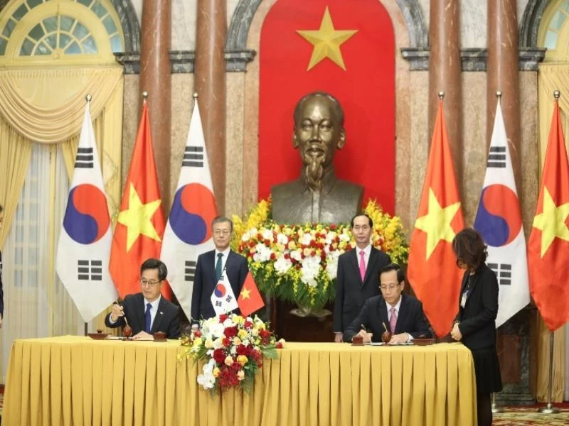 Bản ghi nhớ được sự chứng kiến của Chủ tịch nước Trần Đại Quang và Tổng thống Mun Che In (Hàn Quốc).