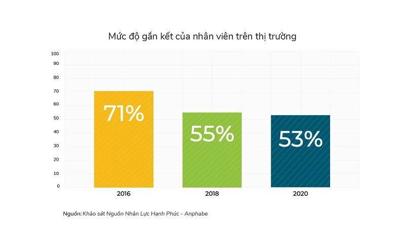 Mức độ gắn kết của nhân viên đối với công ty qua các năm từ khảo sát của Anphabe.