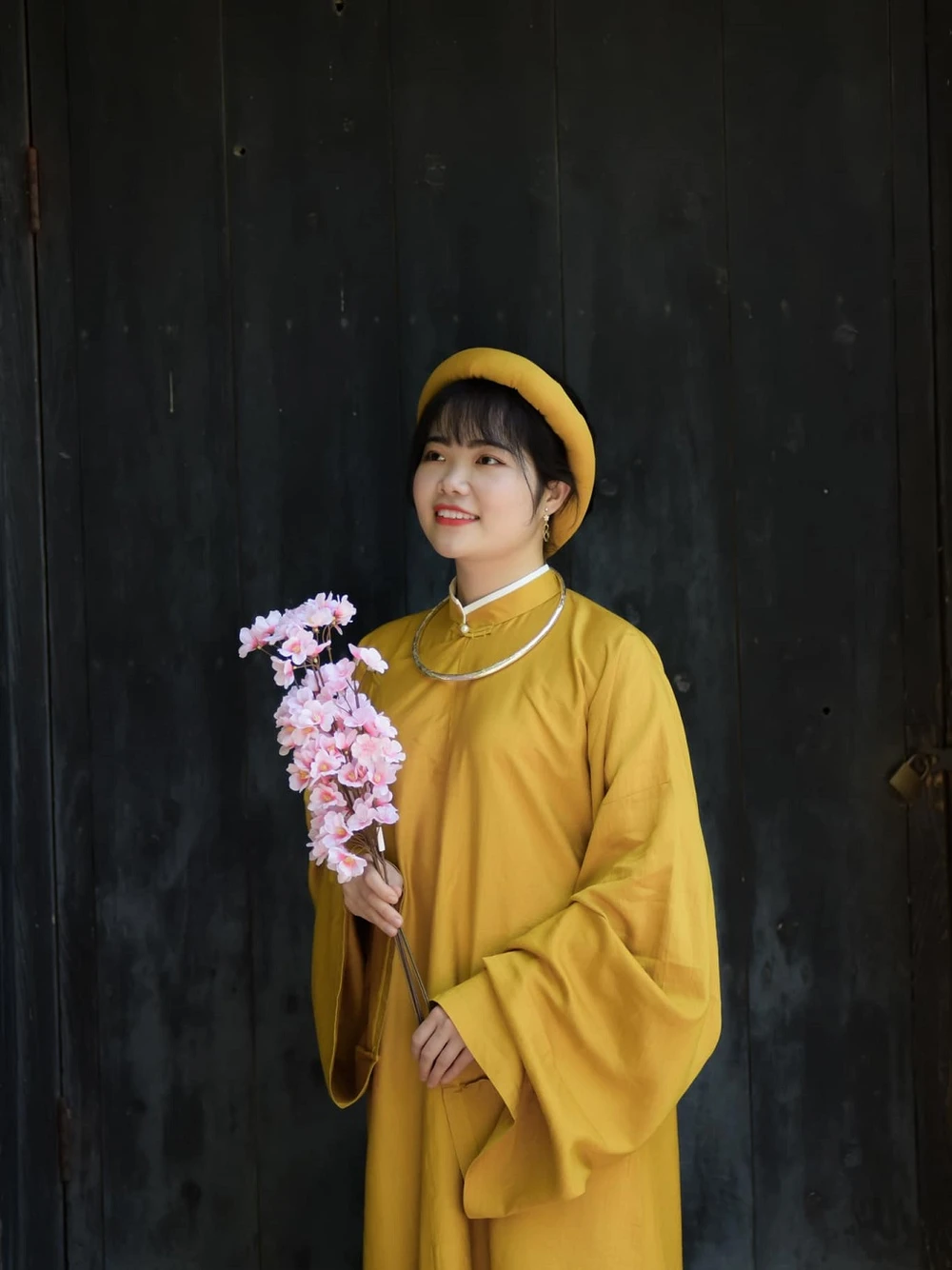 Chị Phạm Thị Thủy diện trang phục áo dài chụp ảnh kỷ niệm dịp tết Nhâm Dần năm nay tại Nhật Bản. Ảnh: NVCC.